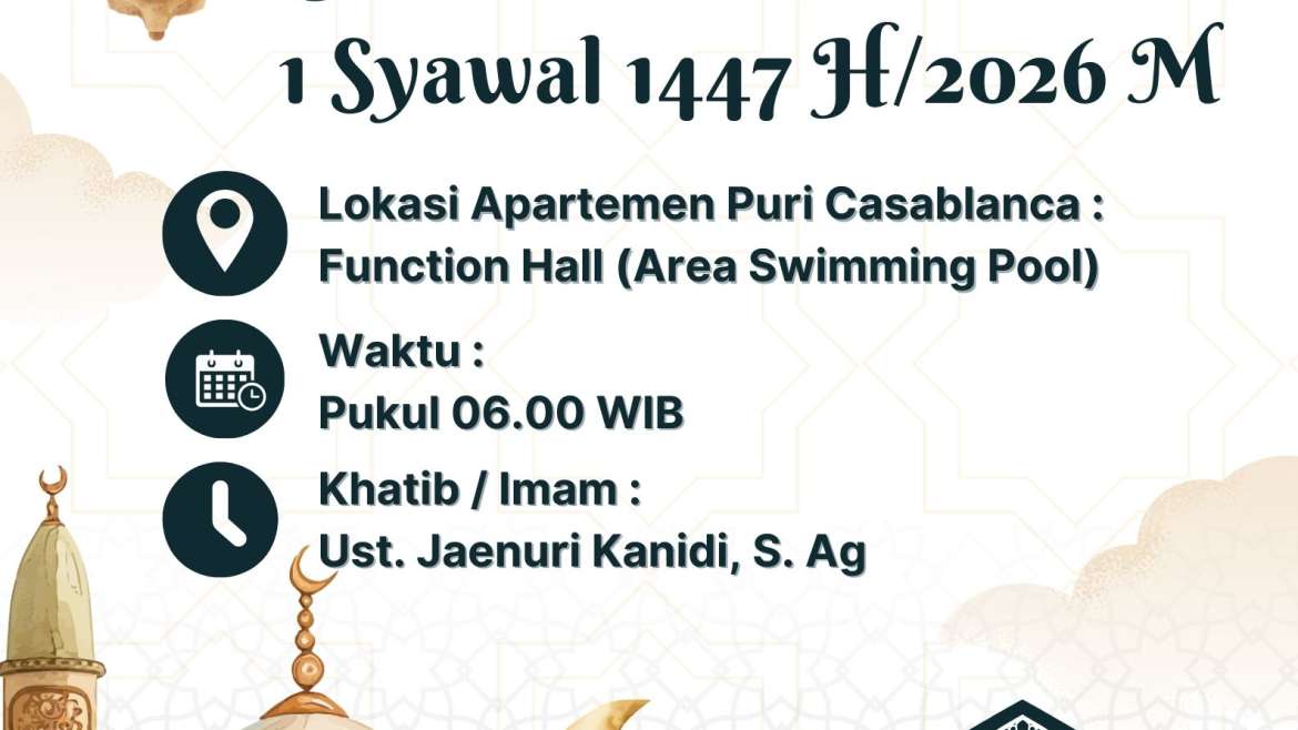 Maret 16, 2026 0Comments Sholat Idul Fitri 1 Syawal 1447 H / 2026 M, Apartemen Puri Casablanca Read more